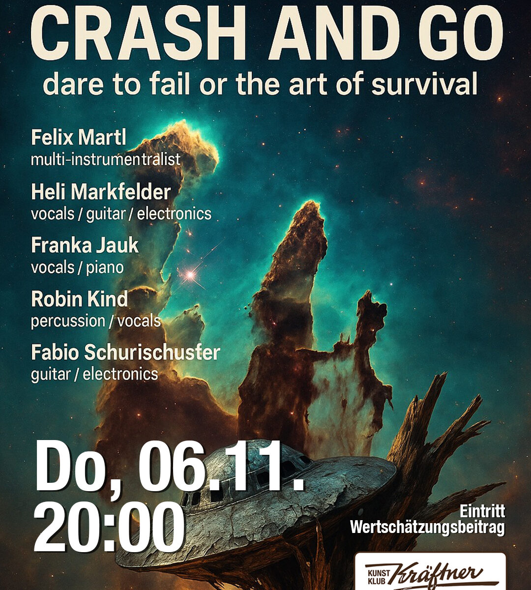 #CrashAndGo #LiveInGraz #KunstKlubKräftner #ArtOfSurvival #MusicAsMagic #livekonzert #aporon21